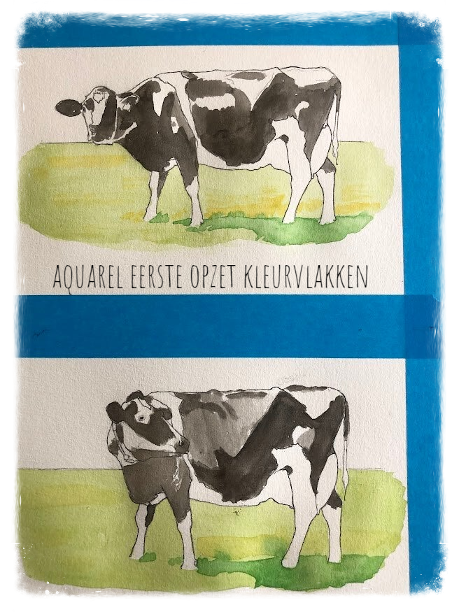 Aquarel, of waterverf, is een manier van schilderen die toch heel anders is dan met acrylverf. Water, verf en papier. Het is hierdoor best gevoelig voor vocht, 1 druppel op het droge schilderij en het is mis. Ik heb gelukkig een methode gevonden waardoor ik dat probleem kan voorkomen. Als het schilderij eenmaal klaar is, lijm ik het op een harde ondergrond (bv canvasboard) en gaat er een waxlaag overheen. Vervolgens kan het gevernisd worden, hierdoor is de kans op waterschade (condens bv) nihil.